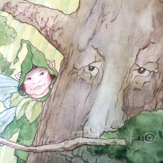 Hierdoor kwam ik op het idee om een portretschilderij te laten maken waar hij samen met zijn tweelingzusje en de andere kleinkinderen ook een plek in kreeg. Met deze wens ben ik naar Bianca gegaan want van haar had ik tijdens een ‘’thuiskomen in jezelf’’ weekend levendige tekeningen van kabouterwezentjes gezien waarbij ik recht in hun ziel kon kijken. Ik zag hun emoties, hun ware “zijn” en zo voel ik de band met mijn vijfde kleinkind die er niet meer is ook. Het was mijn wens om hem op deze manier weer te geven.